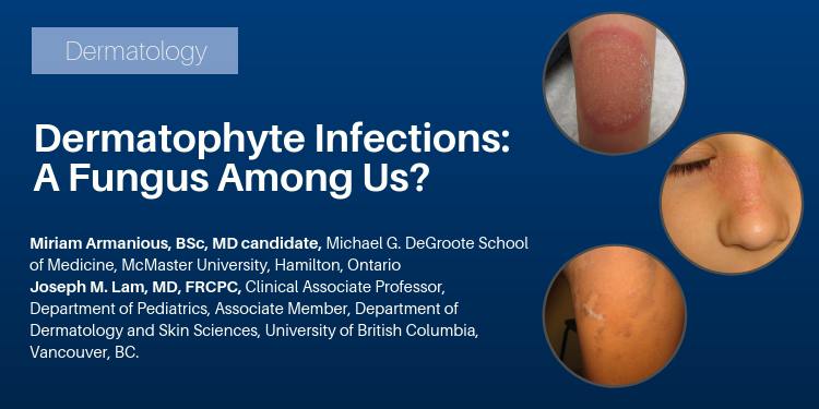 | Dermatophyte infections, also known as tinea, are very common fungal infections in humans. They occur on the superficial skin, hair, and nails, and can present in many different locations on the body. |