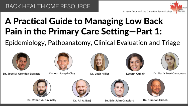 Conner Joseph Clay1, José M. Orenday-Barraza, MD2, María José Cavagnaro MD2, Leah Hillier MD CCFP (SEM)3, Leeann Qubain1, Eric John Crawford MD MSc(c) FRCSC4, Brandon Hirsch MD5, Ali A. Baaj MD2, Robert A. Ravinsky MDCM MPH FRCSC5