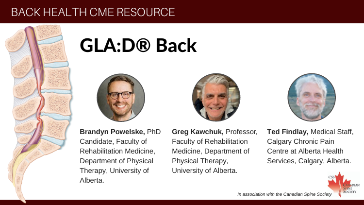 Abstract: While low back pain is one of the most common clinical conditions seen in a family physician's office, there remains a lack of low or no cost initial treatment options that are concordant with recognized best practice guidelines. As a result, many patients are offered investigations and treatments that have limited value and/or significant risks but are readily available through publicly funded provincial health care systems. GLA:D® Back builds upon the successful GLA:D model (initially developed for hip and knee osteoarthritis patients) by using the same established methodology to deliver a patient education and targeted rehabilitation program for low back pain.